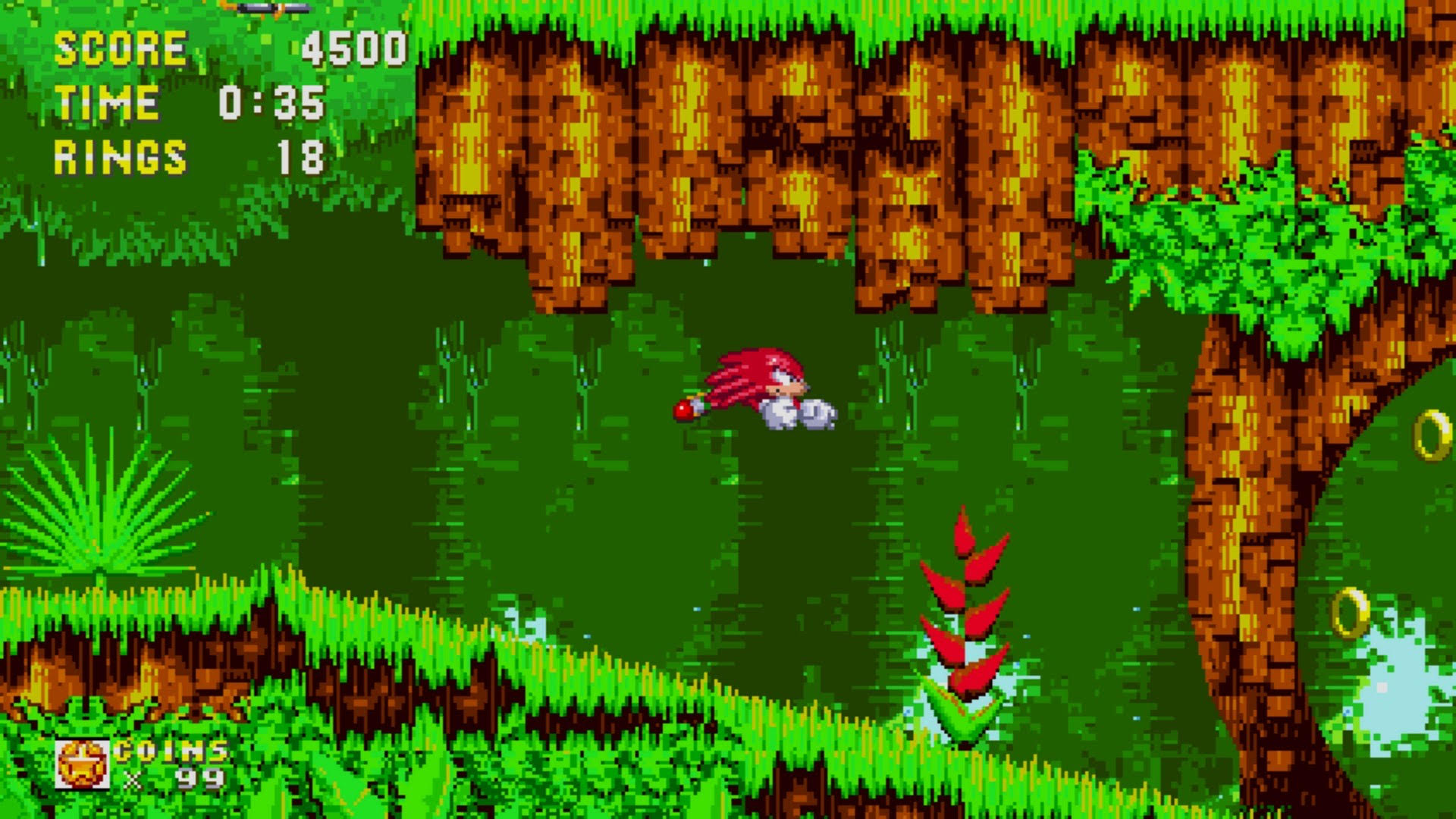 This title introduces Knuckles, a rival character to Sonic, as a playable character alongside Sonic and Tails. Knuckles can glide after jumping and climb most walls. Sonic can now attack while jumping by pressing the jump button again, and with certain shields, he can shoot himself at enemies like a bullet. Players can fly when playing as Tails for the first time in the series. By tapping the jump button the player can spin his tails like propellors to fly.