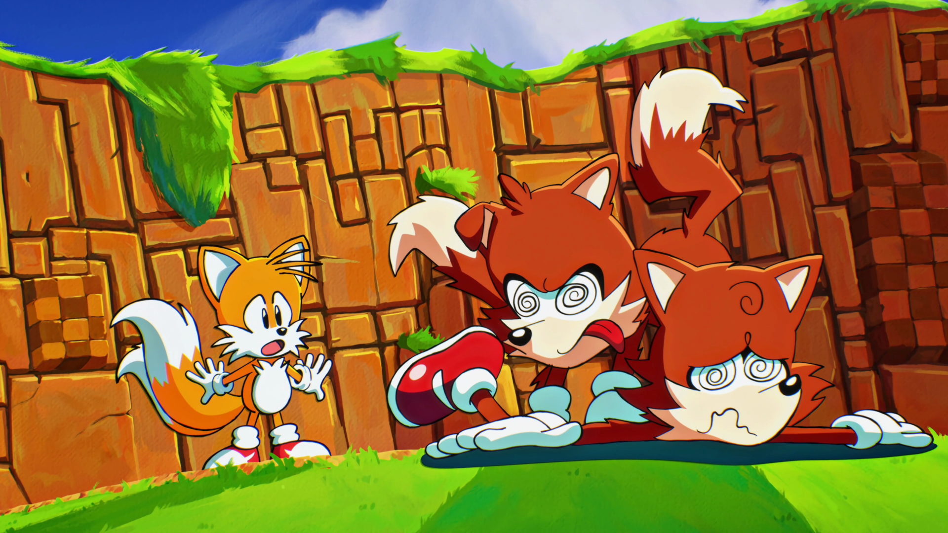 Tails will follow Sonic from behind in single-player mode. With another controller, he can be operated by a second player.