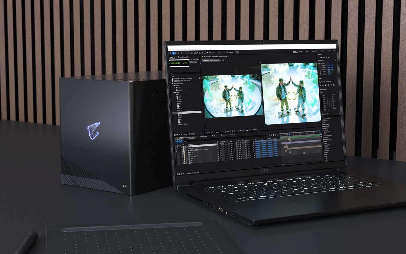 對內容創作者而言,AORUS RTX 5090 AI BOX 同樣是一款能顯著改變工作流程的利器。無論是影片剪輯、3D 渲染或平面設計,RTX 5090 所提供的頂級 RTX 加速能力,都能在主流創作應用程式中帶來明顯效能提升。搭配 NVIDIA Studio 驅動程式的長期支援,創作者能在穩定性與效能之間取得理想平衡。此外,RTX 平台所提供的一系列 AI 工具,也能協助使用者將 AI 技術整合進創作流程中,實現更進階、更高效率的創意應用。
